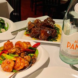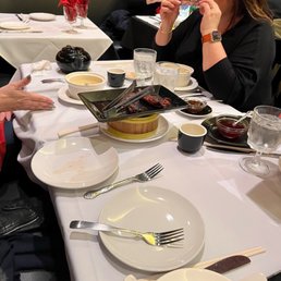 I came with my friend after we saw the Barbie movie at the nearby AMC. I recommended this restaurant because I had been here plenty of times before with my grandparents. It was one of my grandpa's favorite restaurants in NYC. The restaurant was almost empty because we came at night, pretty late. We ordered scallion pancakes, shrimp dumplings, orange chicken, and a noodle dish. The food was really good, and it came in good time. The restaurant was beautiful and I loved the lighting. The seats were comfortable too, which added to the pleasant dining experience. My friend and I ended up not finishing it because they gave us so much food and neither of us could take it home, but we had a wonderful time and Shun Lee was the perfect place for us to reconnect and treat ourselves. I especially loved the sauce on the chicken and the flavor and texture of the noodles and dumplings. I believe the scallion pancakes could have been fluffier and not as crunchy, but they were still delicious. The restaurant is pricey, but I do believe that you get what you pay for and it's worth it.